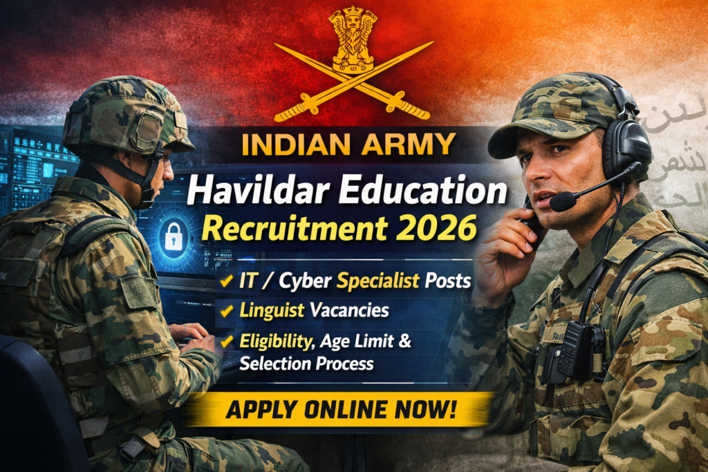Indian Army Havildar Education Recruitment 2026: IT/Cyber & Linguist पदों पर भर्ती, जानें आवेदन प्रक्रिया।